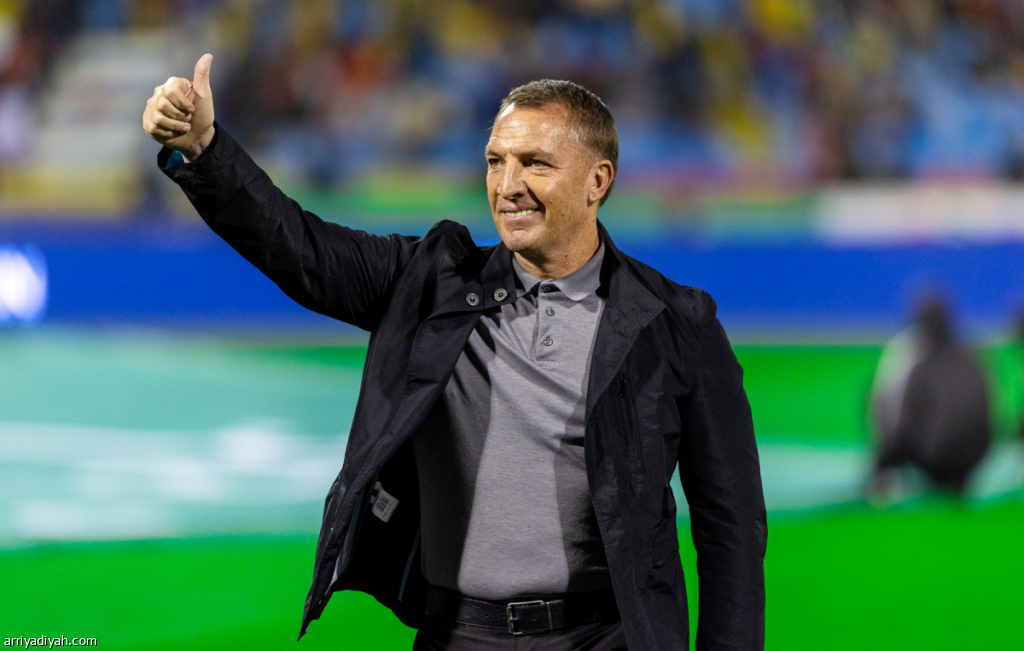 الإيرلندي الشمالي بريندان رودجرز، مدرب القادسية، يؤشر بإبهامه تعبيرًا عن فرحته بالفوز على الفيحاء ضمن الجولة الـ 15 من دوري روشن السعودي تصوير: عيسى الدبيسي