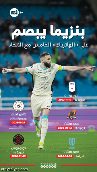 بنزيما يبصم على «الهاتريك» الخامس مع الاتحاد